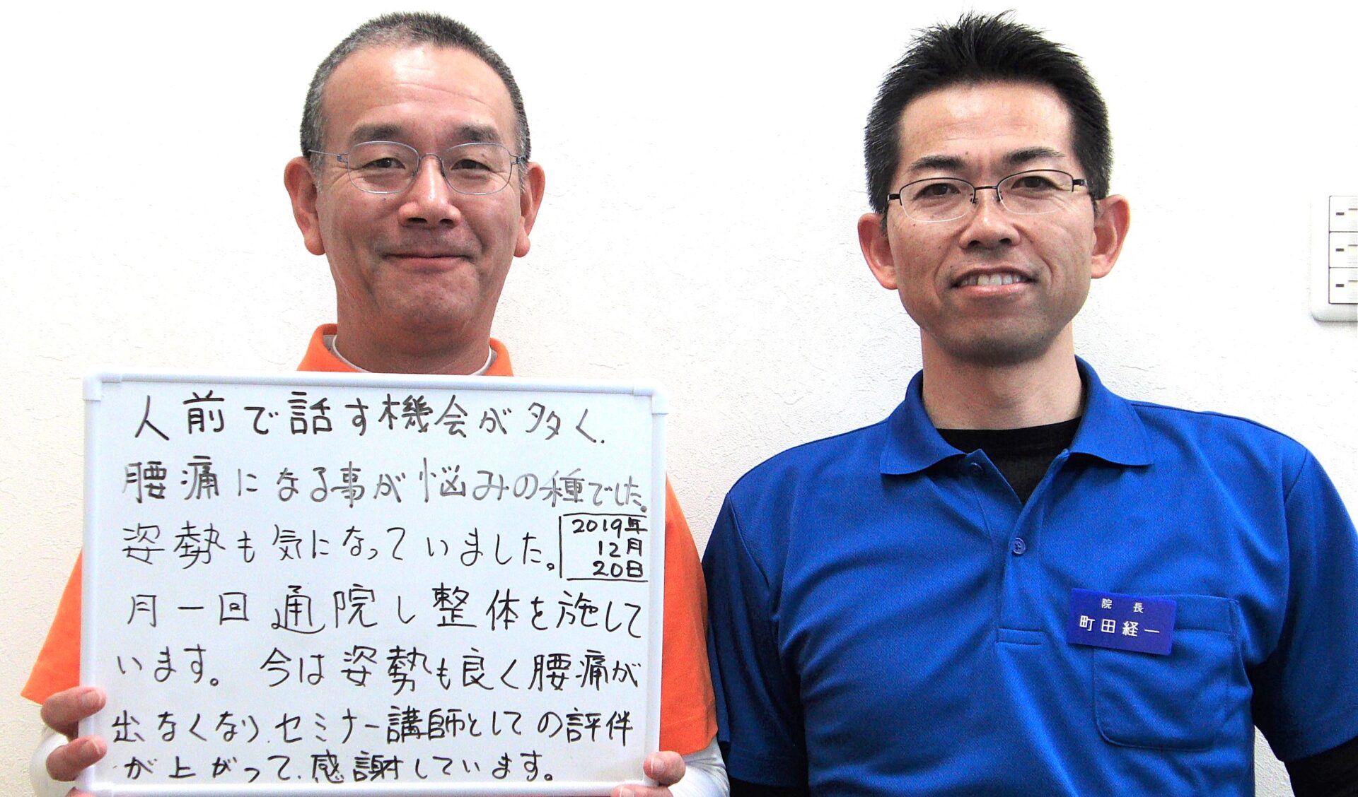 腰痛・すべり症なら前橋市の山王接骨院・山王整体院 こんな症状でお悩みではありませんか? ● 朝、体を起こすのに苦労している● 姿勢を変えたり、立つ時に痛い● 仰向けで腰を伸ばすと痛い● 長く歩いたり、立ち続けていると腰が曲がってしまう● ギックリ腰をもくり返している 多くの方が経験する腰痛。日本で腰痛に悩んでいる人の数は1000万人を超え、日本人の約90%の方が一度は腰痛を経験すると言われています。近年、日本人は世界で最も座っている時間が長い民族というデータもあり、諸外国に比べ腰痛患者さんの割合がとても多いのが現状です。 腰痛の原因は腰ではない! 腰痛が続き、腰のマッサージを受けてもなかなか改善しない方のほとんどは、腰だけが原因ではありません。慢性腰痛の要因は、 ●筋肉が硬くなること ●血流が悪くなること ●ゆがみで動作が乱れることこれら負の連鎖に大きく影響するのが、日常生活における姿勢や動作のクセです。腰は、足や骨盤からなる土台の上に上半身をのせてバランスをとる部分です。足のバランスが崩れていると骨盤が傾いてしまい、腰周辺の筋肉が均等に作用せず、一部分に負担をかけることになります。また、偏った姿勢で長時間座っていたり、同じ動作を何度も何度も繰り返していると、特定の部分に負担をかけ続けていることになり筋肉に疲労がたまり硬くなっていきます。硬くなった筋肉周辺の毛細血管は、圧を受けたままの状態になるので、血流が悪くなり疲労が回復せず、やがて炎症が起こり痛みとなります。 当院の治療方針 山王接骨院・山王整体院では、腰を施術することはもちろん、普段の姿勢や生活動作それぞれのバランスを確認しながら施術を行います。筋肉が緊張している部分は緊張を取り除き、正しく動かせていない部分はしっかり使えるようにエクササイズを行っていきます。体が整ったところで、正しい姿勢とスムーズで負担のかからない動作へと修正していきます。姿勢や動作がしっかり定着するまで来院時やご自宅で体幹のケアを中心にエクササイズを行っていただき、再発させない体を目指します。 ゆがみ改善エクササイズ 体幹部の安定エクササイズ ✓ デスクワークによる腰痛が気になる方はこちら 腰痛を改善された患者様の声 ▶ STU様 88歳 女性 伊勢崎市在住▶ お悩みや来院理由夫の介護などの影響で腰の痛みが強くなり足もむくみがひどくなり、杖がないと歩けなかった。▶ 施術後の感想以前ケガした影響と夫の介護の疲れから、腰痛と両足のシビレがひどくなり、両手で杖を使わないと歩けない状態でした。両足のむくみもひどくなってしまい、靴がはけませんでした。通院するようになって、毎回施術を受けるごとにむくみが解消され、靴も履けるようになりました。腰の痛みや両足のシビレも改善し、杖を使わずに歩けるようになりました。トレーニングでお腹も凹みました。※個人の感想であり、効果を保証するものではありません。 9:00~12:00 / 15:00~20:00 (土18:30) 当日のご予約はお電話で承ります